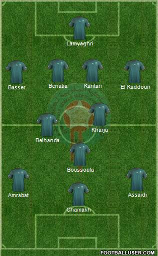 Nadir Lamyaghri.1 · Mehdi Benatia.5 · Ahmed Kantari.23 · Ayoub El Khaliqi.16 · Michaël Chrétien Basser.2 · Adel Taarabt.7 · Houssine Kharja.13 · Mbark Boussoufa.14 · Adil Hermach.6 · Marouane Chamakh.17 · Mounir El Hamdaoui.24