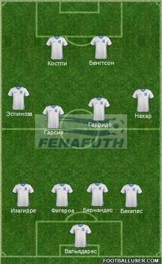 Valladares · Bernardez · Figueroa · Izaguirre · Beckeles · Claros · Garrido · Espinoza · Garcia · Costly · Bengston