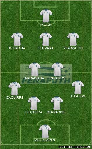 Valladares © · Bernárdez · Figueroa · Beckeles · J. C. García · W. Palacios · Claros · B. García · Espinoza · Costly · Bengtson