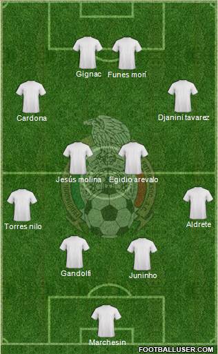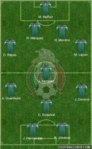Memo · Moreno · Reyes · Layun · Aguilar · Jonnathan · Guardado · Herrera · Esquivel · Chicharito · Vela