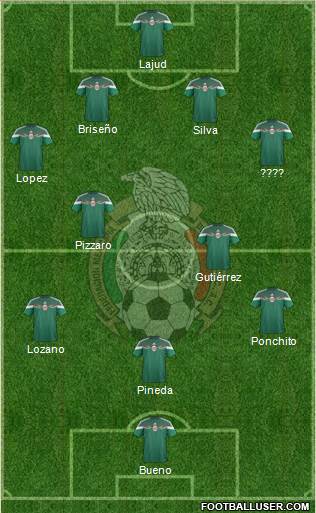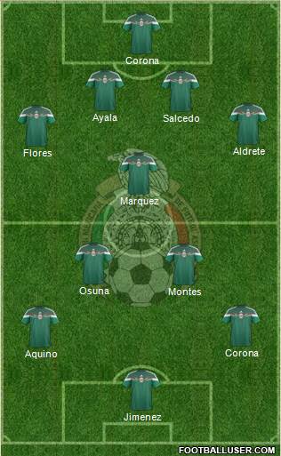 Ochoa · Rodríguez · Salcido · Márquez · Layún · Aguilar · Guardado · Aquino · Fabián · Hernández · Dos Santos