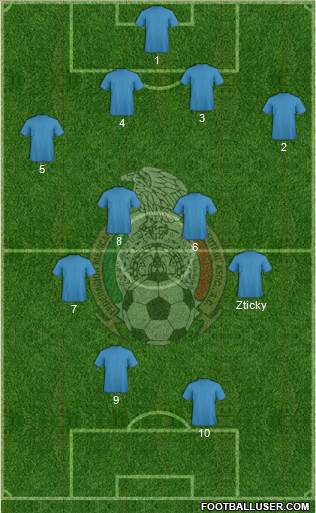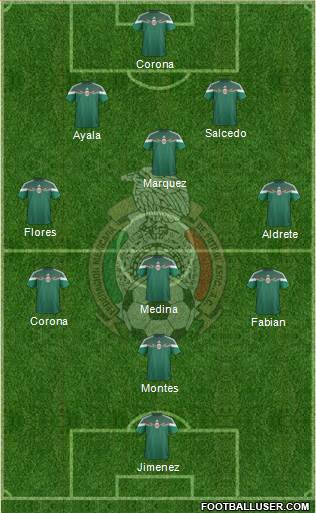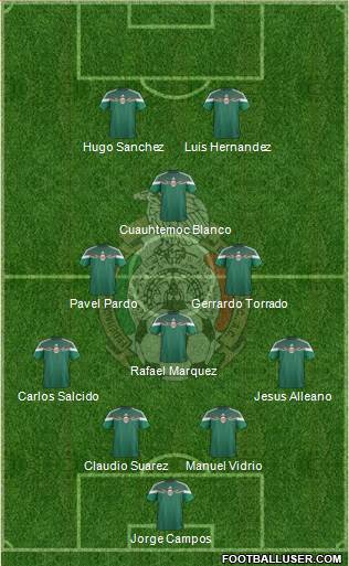 Talavera · Moreno · Rodríguez · Aguilar · Layún · J. Dos Santos · Herrera · Guardado · Corona · Hernandez · Vela