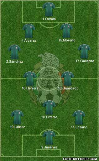 GIOVANI · PERALTA · GUARDADO · HERRERA · VAZQUEZ · LAYUN · AGUILAR · MORENO · RODRIGUEZ · MARQUEZ · OCHOA