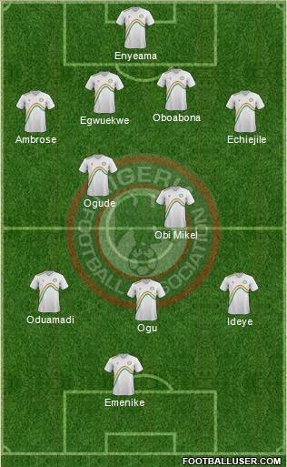 13. IKEME · 16. EJIDE · 1. ENYEAMA · 3. ECHEJILE · 5. AMBROSE · 2. OBOABONA · 4. OMERUO · 22. OTIGBA · 14. BALOGUN · 18. OSHANIWA · 17. OGU · 20. NOSA/AZEEZ · 6. ONAZI · 12. HARUNA · 19. MBA · 10. MIKEL · 15. EZEKIEL · 23. AMEOBI · 7. OBASI · 21. OKAKA · 9. EMENIKE · 11. MOSES · 8. OSAZE · Coach: KESHI