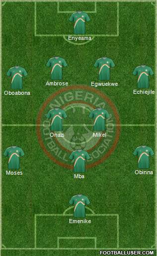 Enyeama · Yobo · Echiejile · Ambrose · Egwuekwe · Mikel · Onazi · Emenike · Ameobi · Moses · Musa