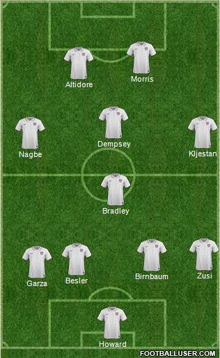 1. Howard © · 13. Besler · 2. Cameron · 3. Beasley · 4. Johnson · 5. Beckerman · 8. Jones · 14. Bradley · 15. Bedoya · 16. Zusi · 9. Dempsey