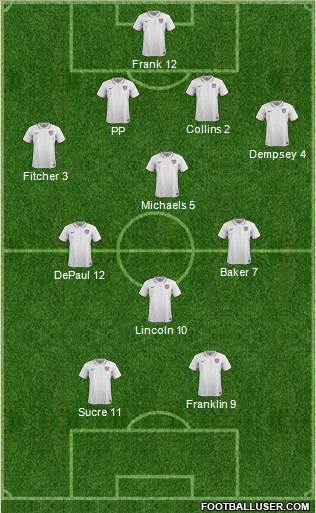 13. A. Morgan · 12. C. Press · 17. T. Heath · 9. L. Horan · 14. M. Brian · 10. C. Lloyd · 11. A. Krieger · 11. K. O'Hara · 4. B. Sauerbrunn · 6. W. Engen · 18. A. Naeher