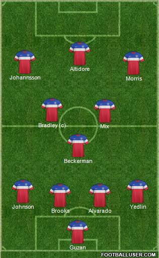 Guzan · Brooks · Alvarado · Johnson · Evans · Beckerman · Bradley · Zardes · Bedoya · Dempsey · Johansson