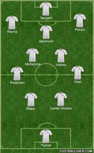 M.Turner · C.Richards · M.Robinson · S.Dest · J.Scally · T.Adams (C) · W.McKennie · Y.Musah · C.Pulisic · G.Reyna · F.Balogun