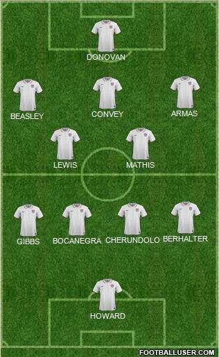 1. HOWARD · 4. BOCANEGRA · 2. BALBOA · 3. MASTROENI · 7. REYNA · 6. KLJESTAN · 5. PULISIC · 8. JONES · 11. ALTIDORE · 10. WONDOLOWSKI · 9. VERMES