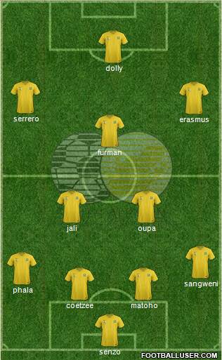 Vonk · Lekgetho · Radebe · Issa · Nzama · T. Mokoena · Sibaya · Pienaar · Fortune · Buckley · McCarthy