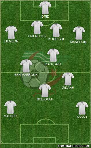 Cherki (Belloumi / Bouzok) · Gouiri (Benzia / Chiakha) · Akliouche (Ibrahim Maza / Abdelli) · Mohamed Amoura (Chaibi) · Bennacer (Aouar / Kadri) · Zerrouki (Boudaoui / Kendouci) · Ait Nouri (Hadjam) · Weiser (Farsi / Atal) · Bensebaini (Elias Benkara) · Mandi (Z.Belaid / Tougai) · Zeghba (Mandrea / Oukidja)