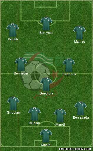 Mandrea / Benbot · Bensebaini / Z.Belaid · Benayada / Keddari · Ait nouri / Hadjem · Atal / Guitoun · Bennacer / Kendouci · Boudaoui / Zorgane · Akliouche / Kadri · M.Amoura / Brahimi / Chaibi · Ounas / Belloumi / Hadj Moussa · Gouiri / Benzia