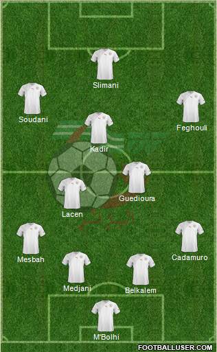 M'bolhi (23) · Bougherra (2) · Belkalem (4) · Mostefa (22) · Ghoulam (3) · Guedioura (17) · Taider (8) · Brahimi (7) · Soudani (15) · Feghouli (10) · Djebbour (9)
