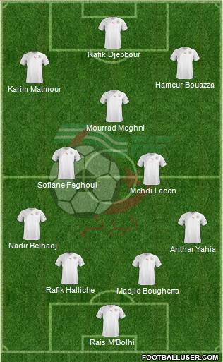 M'Bolhi · Medjani · Belkalem · Cadamoro · Hachoud · Lacen (C) · Guedioura · Kadir · Feghouli · Boudebouz · Soudani