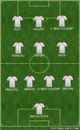 Attouga · Jaidi · Ben Yahia · Berkhissa · Trabelsi · Bouazizi · Chetali · Dhiab · Dos Santos · Khazri · Jemaa