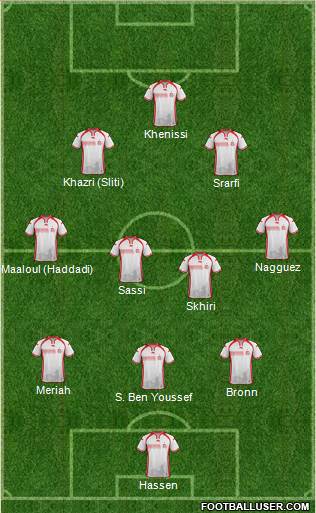 Khenissi · Sliti · Ben Amor · Khazri · Sassi · Aouadhi · S.Ben Youssef · Maâloul · Nagguez · Meriah · Moez Hassen