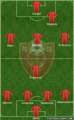 Bozovic · Tomasevic · Basa · Volkov · Savic · Zverotic · Vukcevic · Bozovic · Jovovic · Vucinic · Jovetic