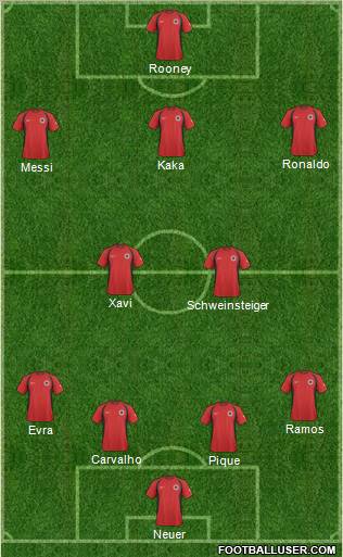 Szczesny (Arsenal) · Mertesacker (Arsenal) · Vermalen (Arsenal) · Santos (Arsenal) · Sagna (Arsenal) · Gerrad (Liverpool) · Kaka (Arsenal) · Bale (Tot) · Wilshere (Arsenal) · Barrios (BVB) · Van Persie (Arsenal)