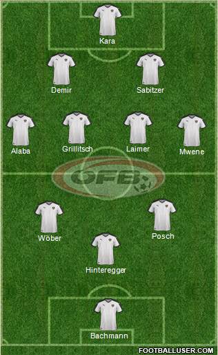 Arnautovic · Schlager · Sabitzer · Grillitsch · Laimer · Lazaro · Alaba · Friedl · Posch · Lienhart · Bachmann