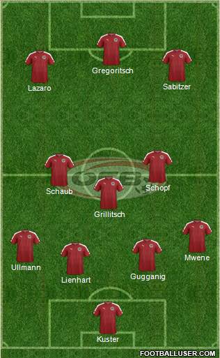 Arnautovic · Sabitzer · Schlager · Laimer · Lazaro · Lainer · Grillitsch · Hinteregger · Dragovic · Alaba · Strebinger