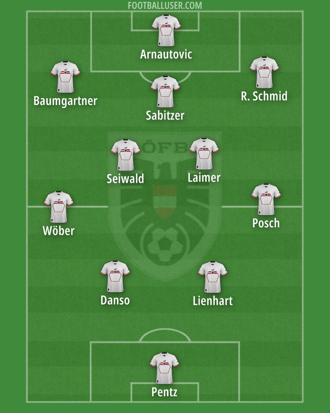 Grbic · R. Schmid · Baumgartner · Wimmer · Seiwald · Sabitzer · Laimer · Alaba · Posch · Lienhart · Pentz