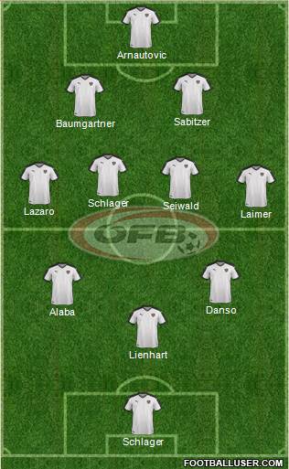 Wimmer · Sabitzer · Baumgartner · Prass · Arnautovic · Stöger · Seiwald · Posch · Hedl · Danso · Lienhart