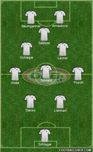 P.Pentz · D.Alaba (C) · P.Lienhart · M.Wöber · S.Lainer · X.Schlager · N.Seiwald · M.Sabitzer · C.Baumgartner · K.Laimer · M.Gregoritsch