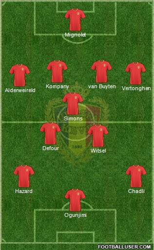 Mignolet · Kompany · Vermaelen · Alderweireld · Vertonghen · Defour · Fellaini · Witsel · Hazard · Dembele · Lukaku