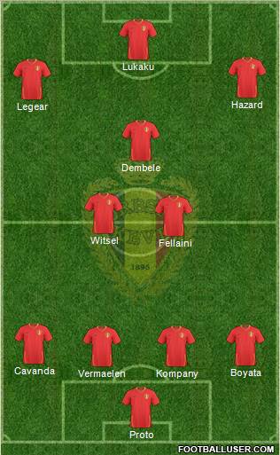 S.Proto · T.Vermaelen · V.Kompany · S.Pocognoli · Vanden Borre · M.Fellaini · S.Defour · A.Witsel · M.Dembélé · E.Hazard · R.Lukaku