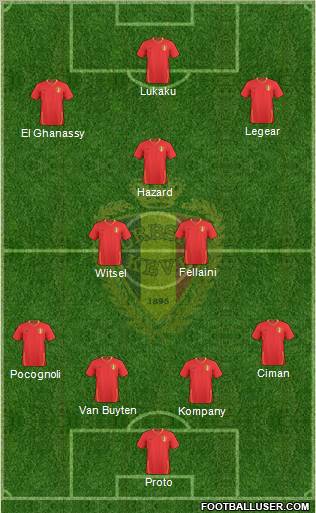 Mignolet · Vermaelen · Kompany · Tshimanga · Vanden Borre · Defour · Witsel · Fellaini · Dembele · Hazard · Lukaku