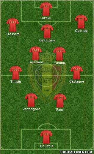 Casteels · Debast · Witsel · Theate · Onana · Tielemans · Meunier · Doku · De Bruyne (c) · Trossard · Openda
