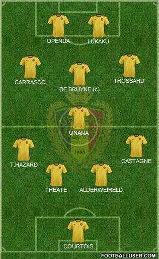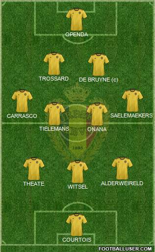 COURTOIS · THEATE · BORNAUW · CARRASCO · SAELEMAEKERS · TIELEMANS · ONANA · DE BRUYNE (c) · DOKU · TROSSARD · LUKAKU