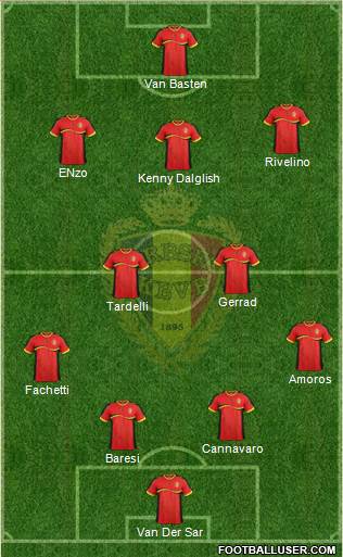 COURTOIS · VERMAELEN · KOMPANY · VERTHONGEN · ALDERWEIRELD · WITSEL · DEMBELE · FELLAINI · HAZARD · DE BRUYNE · LUKAKU / BENTEKE
