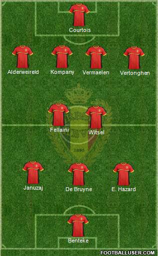Courtois · Kompany · Lombaerts · Alderweireld · Vertonghen · Witsel · Fellaini · Defour · Hazard · Van Bruyne · Lukaku