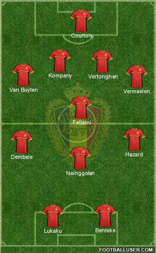 Courtois · Vertonghen · Vermaleen · Kompany · Witsel · Naingolan · De bruyne · Mirallas · Mertens · Hazard · Lukaku