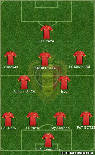 Courtois · Mignolet · Casteels · Van Buyten · Vermaelen · Lombaerts · Kompany · Vertonghen · Alderweireld · Cavanda · Nainggolan · Fellaini · Witsel · Defour · Dembele · Chadli/Januzaj · De Bruyne · Mirallas · Hazard · Mertens · Benteke · Lukaku · Batshuayi