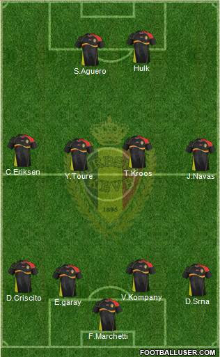 T. Courtois · D. van Buyten · V. Kompany · J. Verthongen · T. Alderweireld · A. Witsel · M. Dembélé · D. Mertens · E. Hazard · K. de Bruyne · C. Benteke