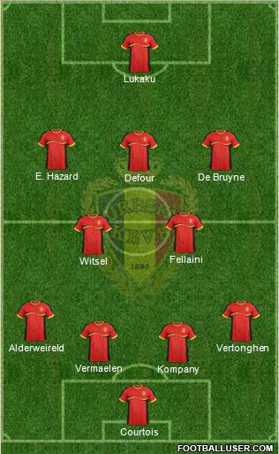 Courtois · Kompany · Vermaelen · Alderweireld · Vertonghen · Witsel · Defour · Fellaini · De Bruyne · Hazard · Lukaku