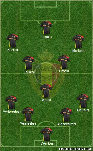 Lukaku · Mirallas · Benteke · Bakkali · Dembélé · Fellaini · Hazard · Mertens · Defour · De Bruyne · Simons · Witsel · Chadli · Van Buyten · Lombaerts · Gillet · Alderweireld · Kompany · Vermaelen · Vertonghen · Courtois · Mignolet · Casteels · M. Wilmots
