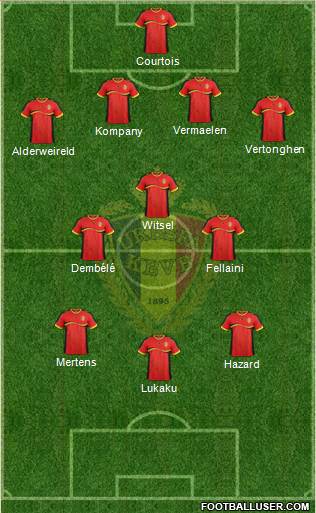 Courtois · Vermaelen · Kompany · Aiderweireld · Vertonghen · Fellaini · Defour · Mirallas · De Bruyne · Hazard · Lukaku
