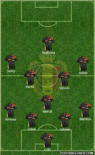 Benteke · Hazard · De Bruyne · Mertens · Nainggolan · Witsel · Vertonghen · Vanden Borre · Vermaelen · Kompany · Courtois