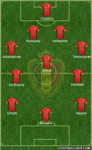 Courtois · Kompany · Vertonghen · Vermaelen · Alderweireld · Witsel · Fellaini · Dembele · Mertens · Hazard · Benteke