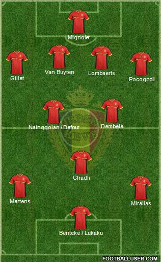 Courtois · Lombaerts · Alderweireld · Cavanda · Vertonghen (c) · Witsel · Defour · Fellaini · Hazard · Mirallas · Lukaku