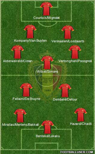 COURTOIS · GILLET · VENTONGHEN · KOMPANY · VERMAELEN · DE BRUYNE · WITSEL · FELLANI · HAZZARD · MERTENS · BENTEKE