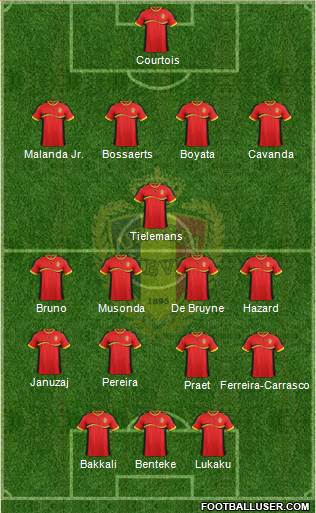 Courtois · Kompany · Vermaelen · Verthongen · Alderweireld · Witsel · Fellaini · Hazard · De Bruyne · Benteke · Lukaku