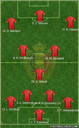 Courtois · Vermaelen · Kompany · Vertonghen · Alderweireld · Witsel · Dembele · Fellaini · Hazard · De Bruyne · Benteke