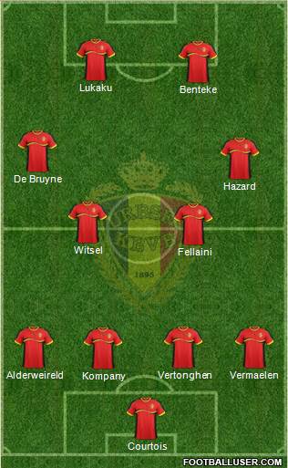Courtois · Kompany · Verthongen · Pocognoli · Gillet/Alderweireld · Fellaini · Hazard · Witsel · Dembele · De Bruyne · Benteke