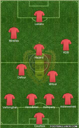 Courtois · Kompany · Van Buyten · Alderweirel · Vertonghen · Fellaini · Dembele · Witsel · Hazard · Mertens · Lukaku