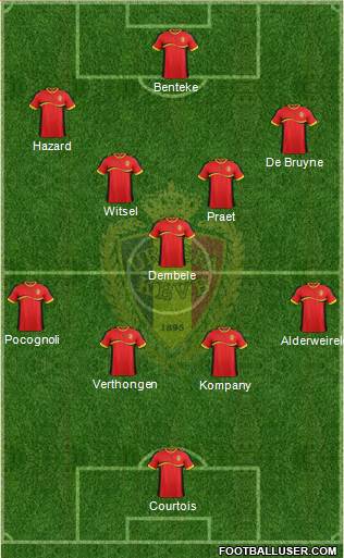 Courtois · Van Buyten · Kompany · Vermaelen · Vertonghen · Nainggolan · Witsel · Fellaini · Hazard · Lukaku · Benteke